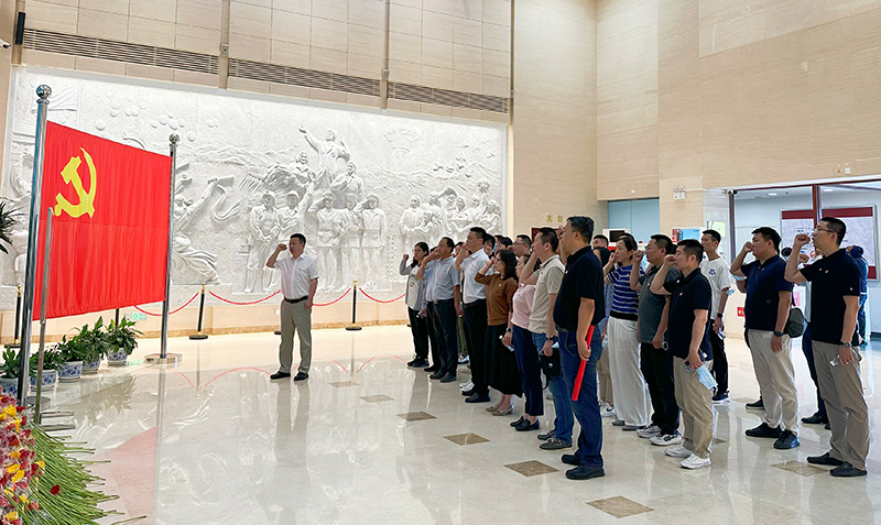 在紀(jì)念館內(nèi),公司黨委書記孫亞龍領(lǐng)誓,全體黨員在黨旗的見證下,重溫了對(duì)黨忠誠(chéng)的錚錚誓言。