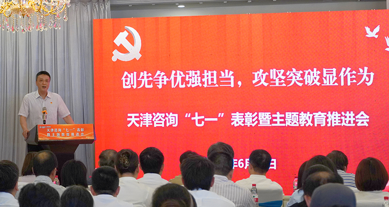 6月30日下午,天津工程咨詢有限公司黨委召開“創(chuàng)先爭優(yōu)強(qiáng)擔(dān)當(dāng),攻堅(jiān)突破顯作為”—天津咨詢“七一”表彰暨主題教育推進(jìn)會(huì)。集團(tuán)副總經(jīng)濟(jì)師、調(diào)研員,天津咨詢領(lǐng)導(dǎo)班子、部門經(jīng)理及本部全體黨員,各事業(yè)部、子公司領(lǐng)導(dǎo)班子、部門負(fù)責(zé)人、黨務(wù)干部及黨員、受表彰先進(jìn)代表現(xiàn)場參加會(huì)議。系統(tǒng)全體黨員同步線上收看大會(huì)視頻直播。公司黨委委員、副總經(jīng)理朱震主持會(huì)議。