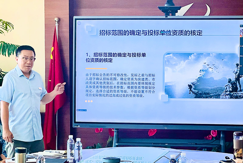 為進(jìn)一步強(qiáng)化天津咨詢(xún)各業(yè)務(wù)板塊協(xié)同聯(lián)動(dòng),通過(guò)分享招標(biāo)業(yè)務(wù)板塊在政府采購(gòu)和招投標(biāo)項(xiàng)目中積累的智力資源和實(shí)戰(zhàn)經(jīng)驗(yàn),提升各業(yè)務(wù)板塊在參與項(xiàng)目投標(biāo)中應(yīng)對(duì)實(shí)際問(wèn)題的能力,促進(jìn)工程咨詢(xún)服務(wù)質(zhì)量效率提升,2023年7月18日下午,由天津咨詢(xún)?nèi)肆Y源部、戰(zhàn)略市場(chǎng)部聯(lián)合主辦、泛亞公司和第二事業(yè)部(招標(biāo)公司)協(xié)辦的系統(tǒng)專(zhuān)業(yè)共享課(第二期)——《招投標(biāo)業(yè)務(wù)交流培訓(xùn)》在本部四樓會(huì)議室開(kāi)講。邀請(qǐng)泛亞公司副總經(jīng)理劉杰和第二事業(yè)部(招標(biāo)公司)招標(biāo)業(yè)務(wù)二部部長(zhǎng)高睿主講,授課采取“線上+線下”形式進(jìn)行,共計(jì)70余名員工參加了課程學(xué)習(xí)。