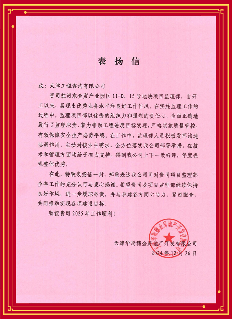 感恩客戶 再接再厲——天津咨詢承擔工程建設(shè)監(jiān)理項目獲業(yè)主好評