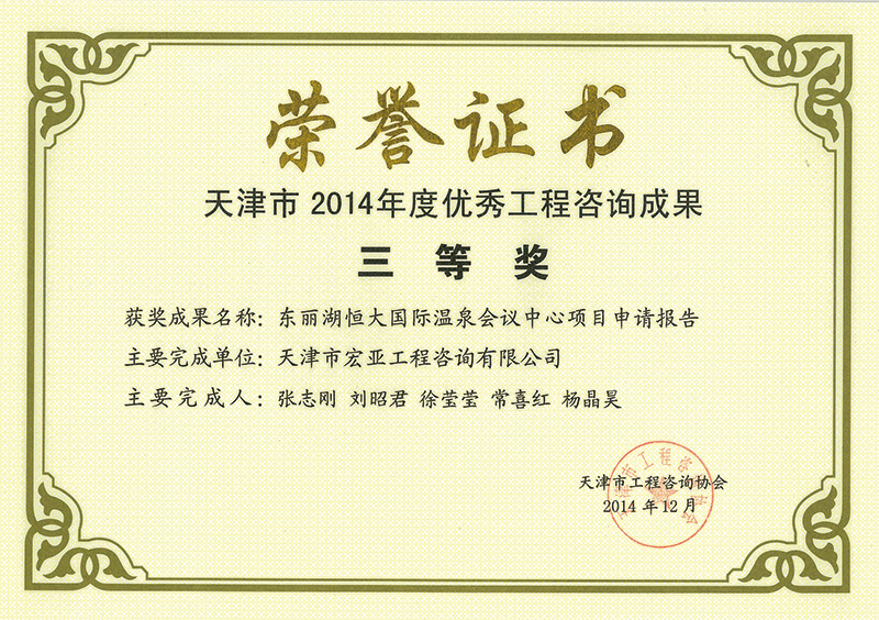 優(yōu)秀咨詢成果三等獎(jiǎng)(2014)